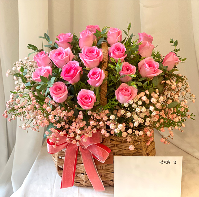 TV소개된 그 칼라안개와 핑크장미 꽃바구니