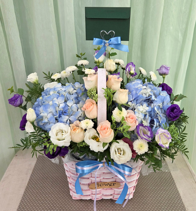 수국 장미 바구니