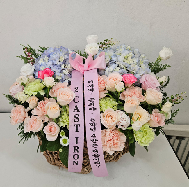 수국 장미 바구니