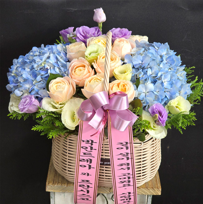 수국 장미 바구니