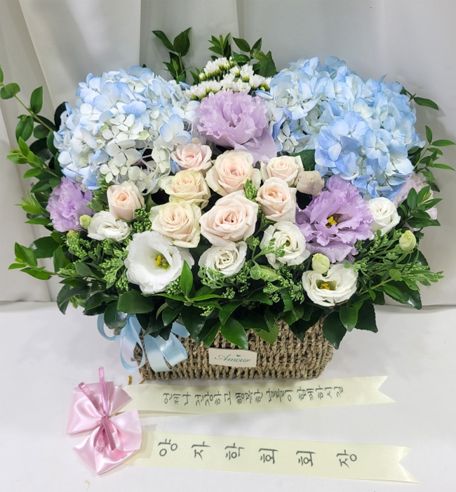 수국 장미 바구니