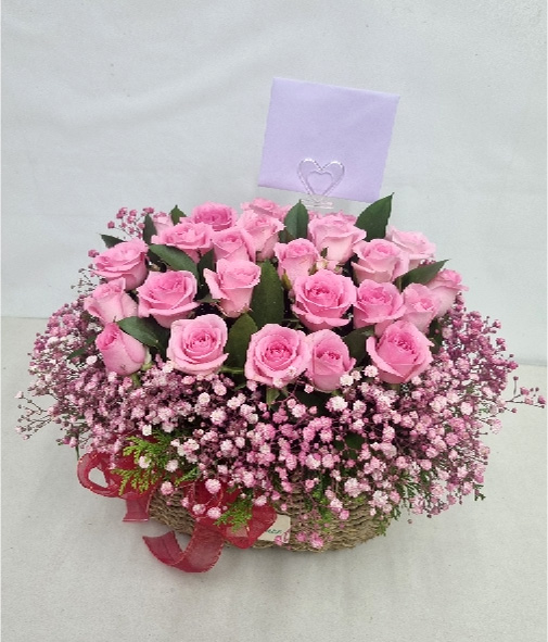 TV소개된 그 칼라안개와 핑크장미 꽃바구니