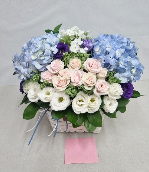 수국 장미 바구니
