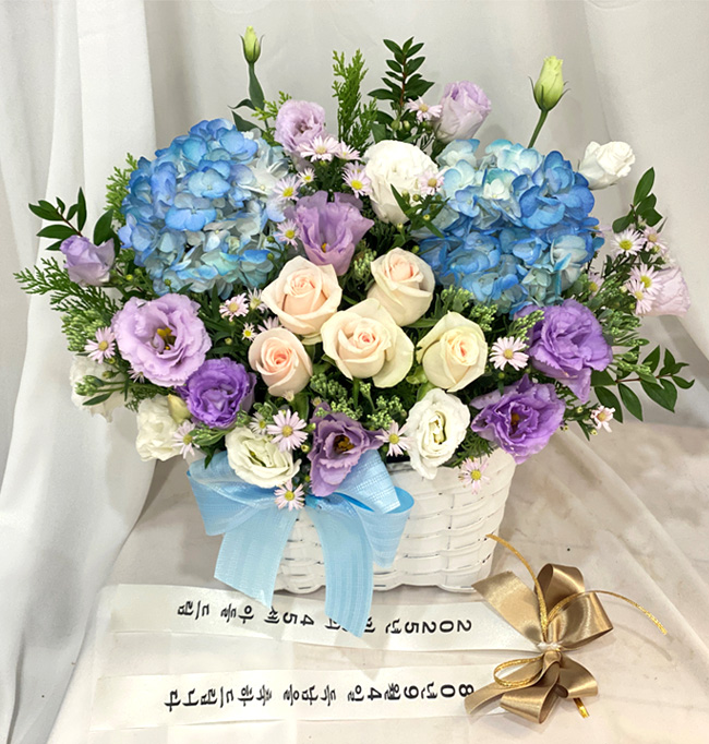 수국 장미 바구니
