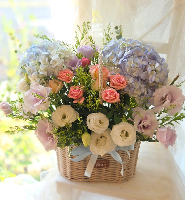 수국 장미 바구니