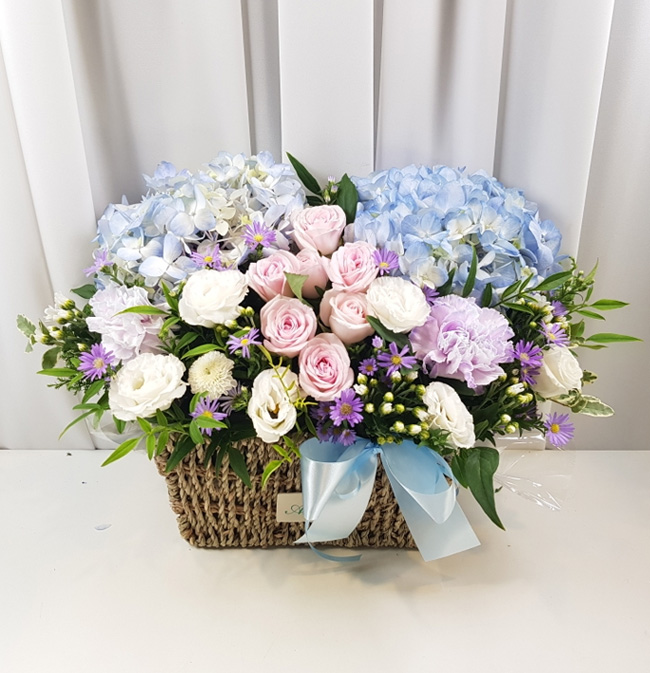 수국 장미 바구니