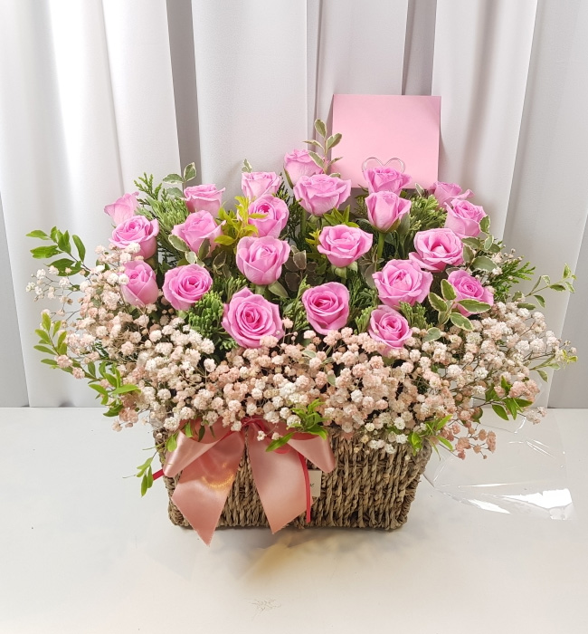 TV소개된 그 칼라안개와 핑크장미 꽃바구니