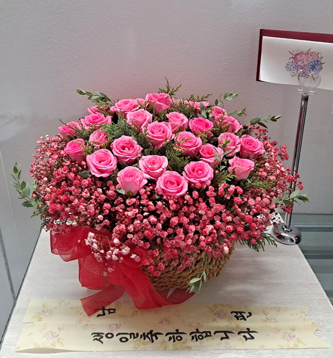 TV소개된 그 칼라안개와 핑크장미 꽃바구니