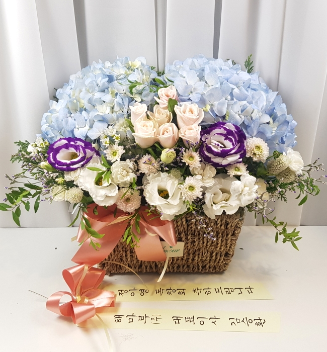수국 장미 바구니
