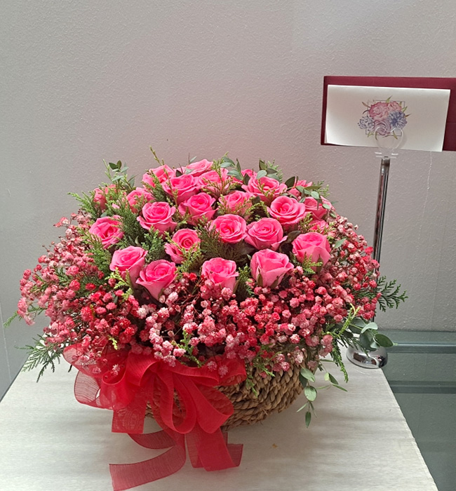 TV소개된 그 칼라안개와 핑크장미 꽃바구니