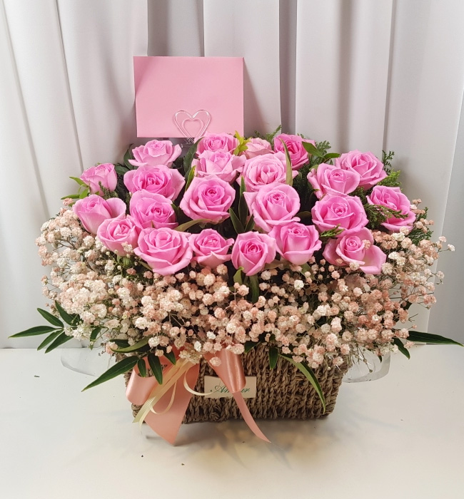 TV소개된 그 칼라안개와 핑크장미 꽃바구니