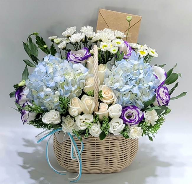 수국 장미 바구니