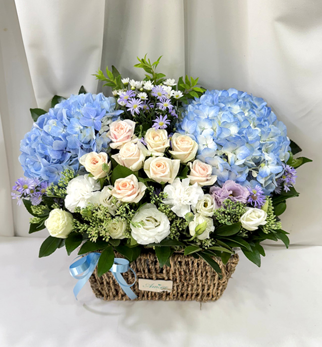 수국 장미 바구니