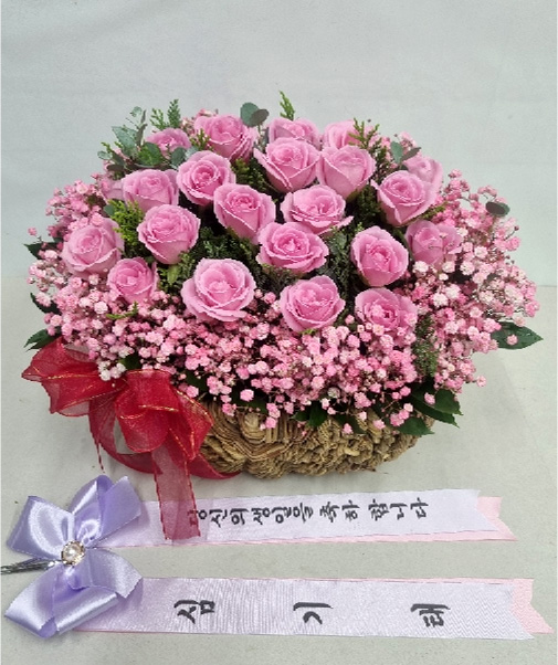 TV소개된 그 칼라안개와 핑크장미 꽃바구니