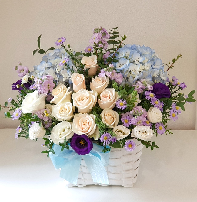 수국 장미 바구니