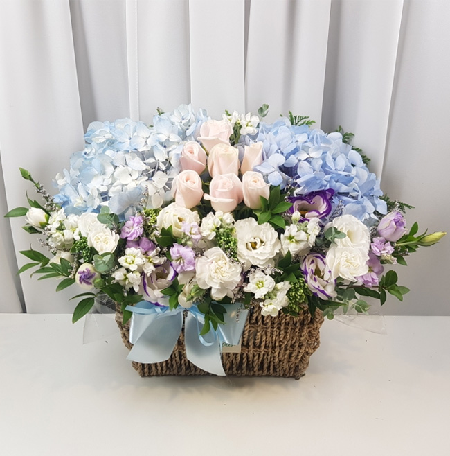 수국 장미 바구니
