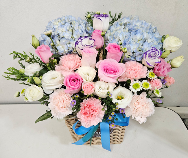 수국 장미 바구니