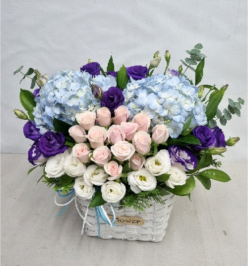 수국 장미 바구니