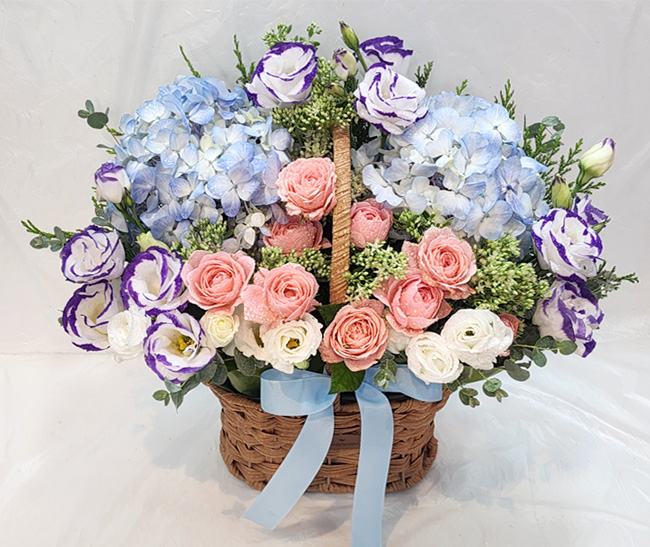 수국 장미 바구니