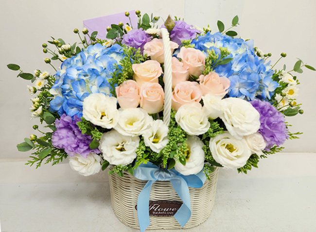 수국 장미 바구니