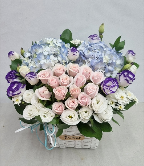 수국 장미 바구니