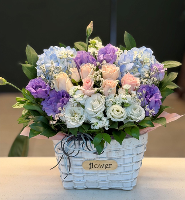 수국 장미 바구니