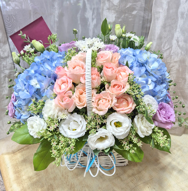 수국 장미 바구니