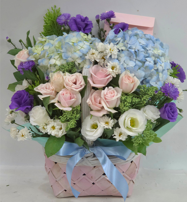 수국 장미 바구니