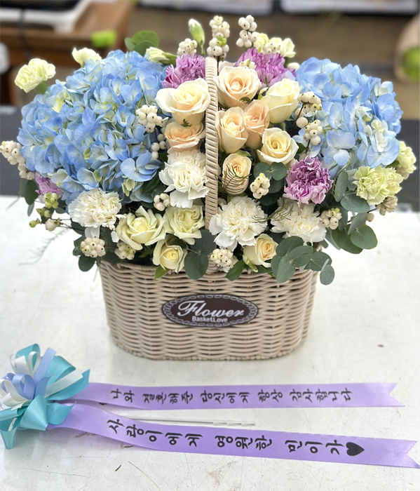 수국 장미 바구니