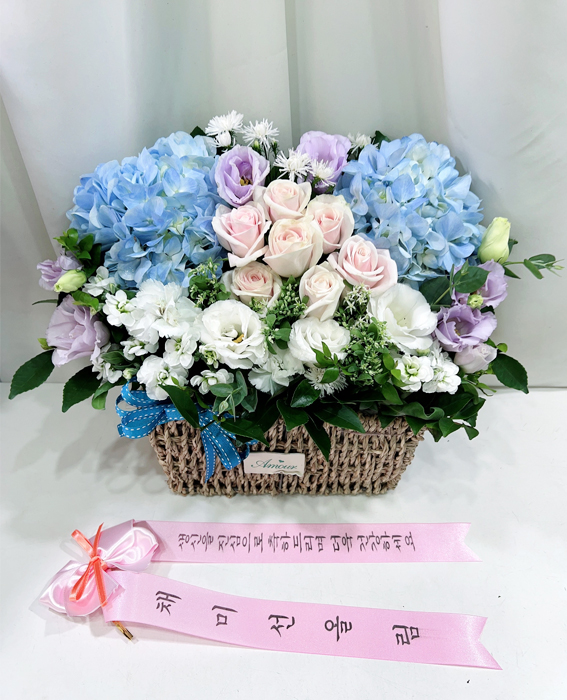 수국 장미 바구니