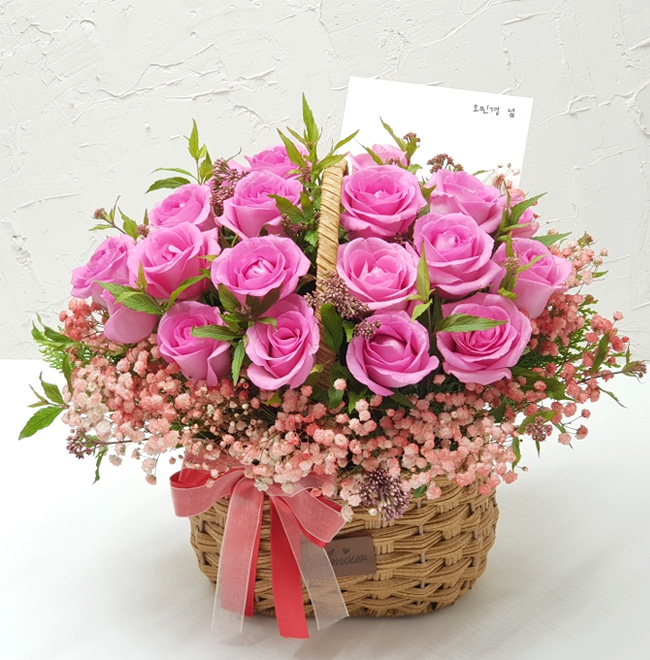 TV소개된 그 칼라안개와 핑크장미 꽃바구니