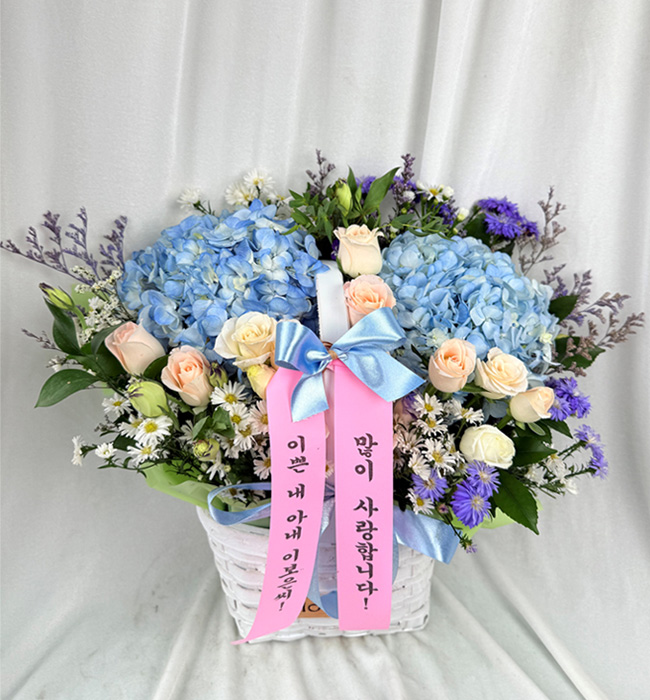 수국 장미 바구니
