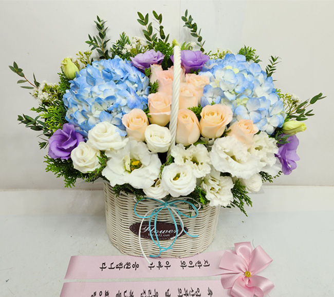 수국 장미 바구니