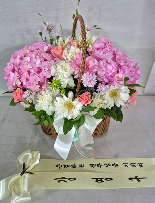 수국 장미 바구니