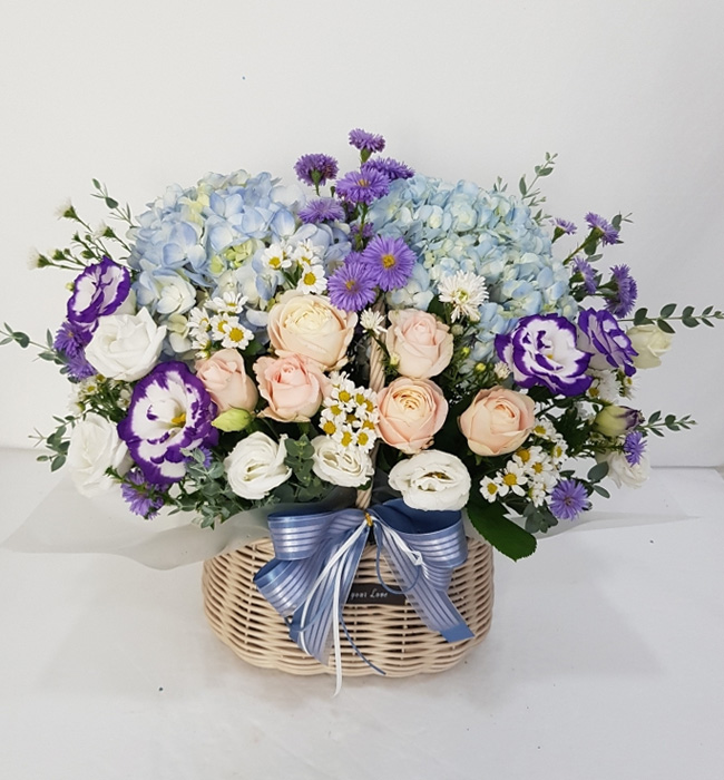 수국 장미 바구니