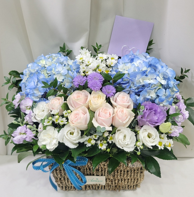 수국 장미 바구니