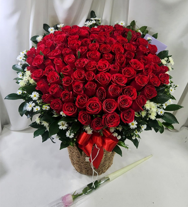 백장미100송이 하트 꽃바구니