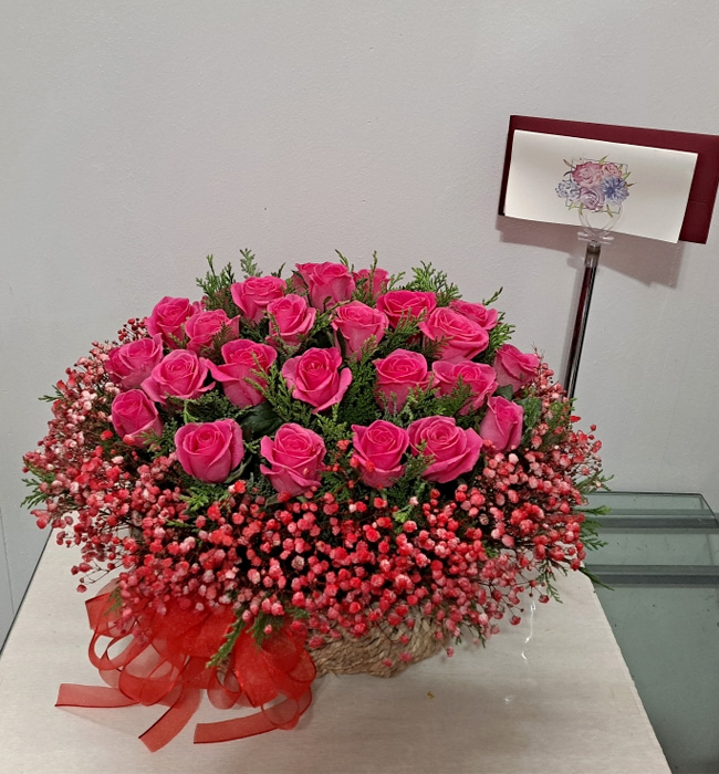 TV소개된 그 칼라안개와 핑크장미 꽃바구니