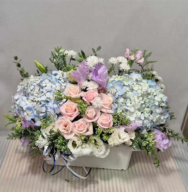 수국 장미 바구니