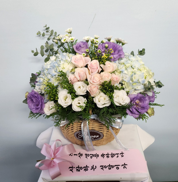 수국 장미 바구니