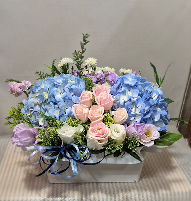 수국 장미 바구니