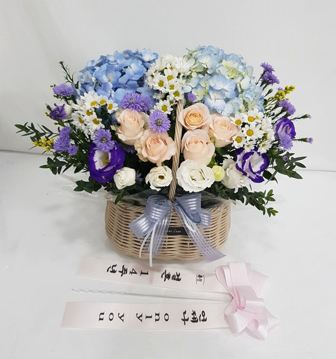 수국 장미 바구니