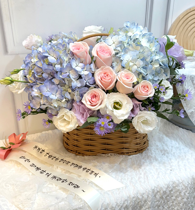 수국 장미 바구니