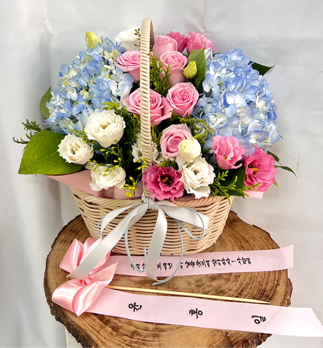 수국 장미 바구니