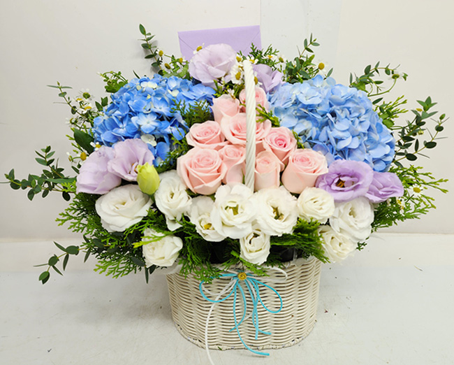 수국 장미 바구니