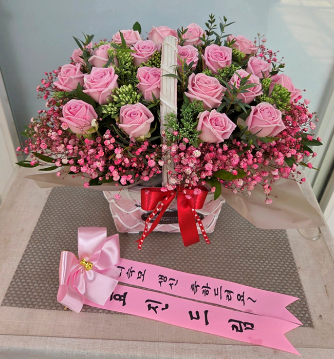 TV소개된 그 칼라안개와 핑크장미 꽃바구니