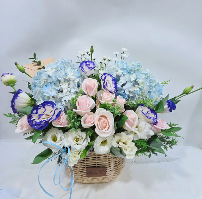 수국 장미 바구니