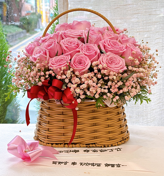 TV소개된 그 칼라안개와 핑크장미 꽃바구니