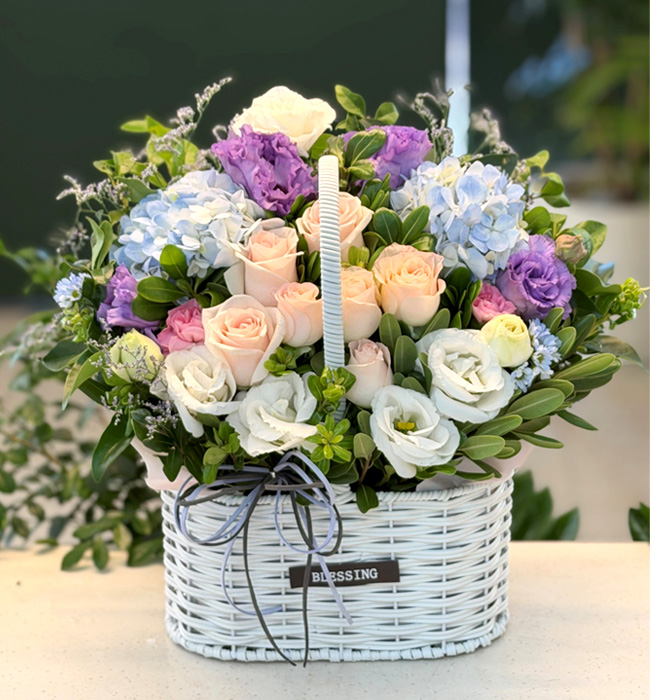 수국 장미 바구니
