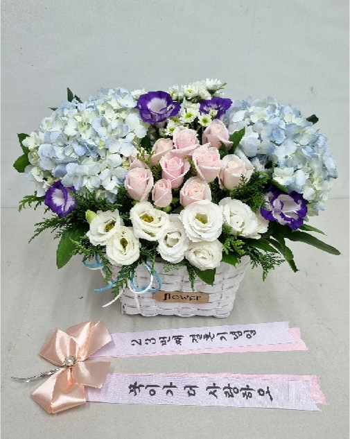 수국 장미 바구니